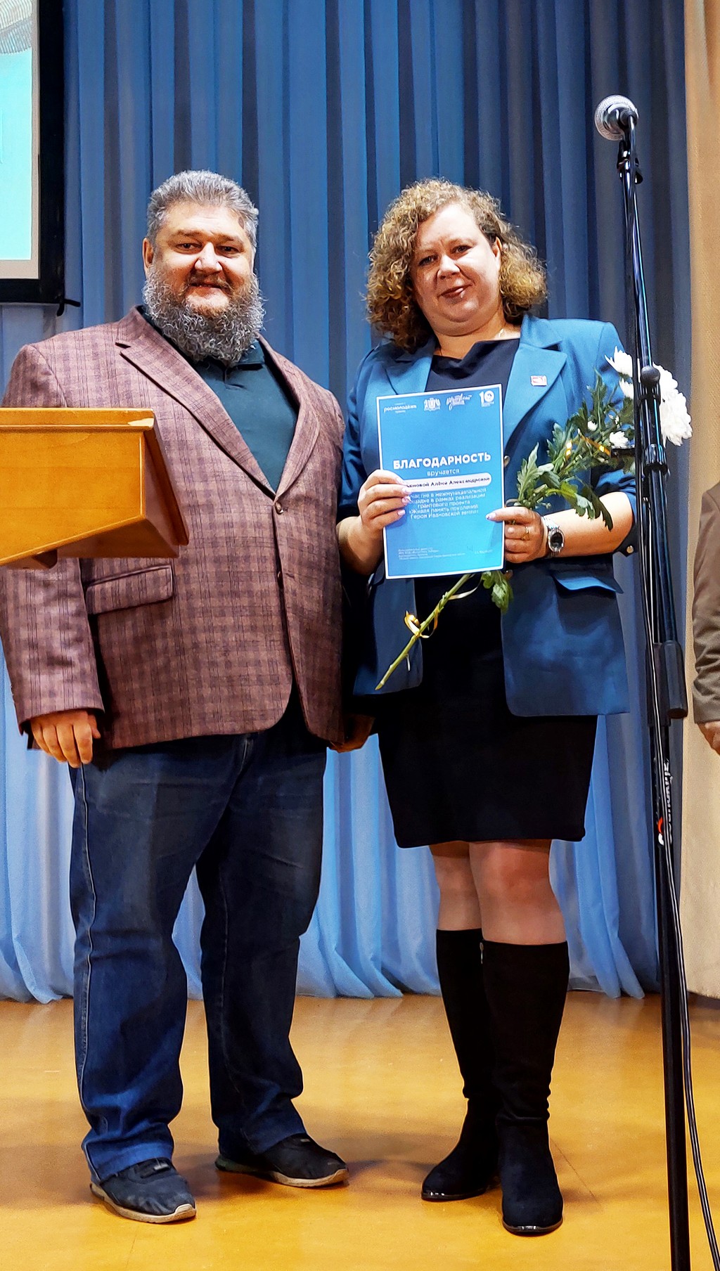 Благодарность была вручена председателю местного отделения Движения Первых Пучежского района Алёне Александровне Кирьяновой за участие в межмуниципальной площадке в рамках реализации грантового проекта «Живая память поколений: Герои Ивановской земли».