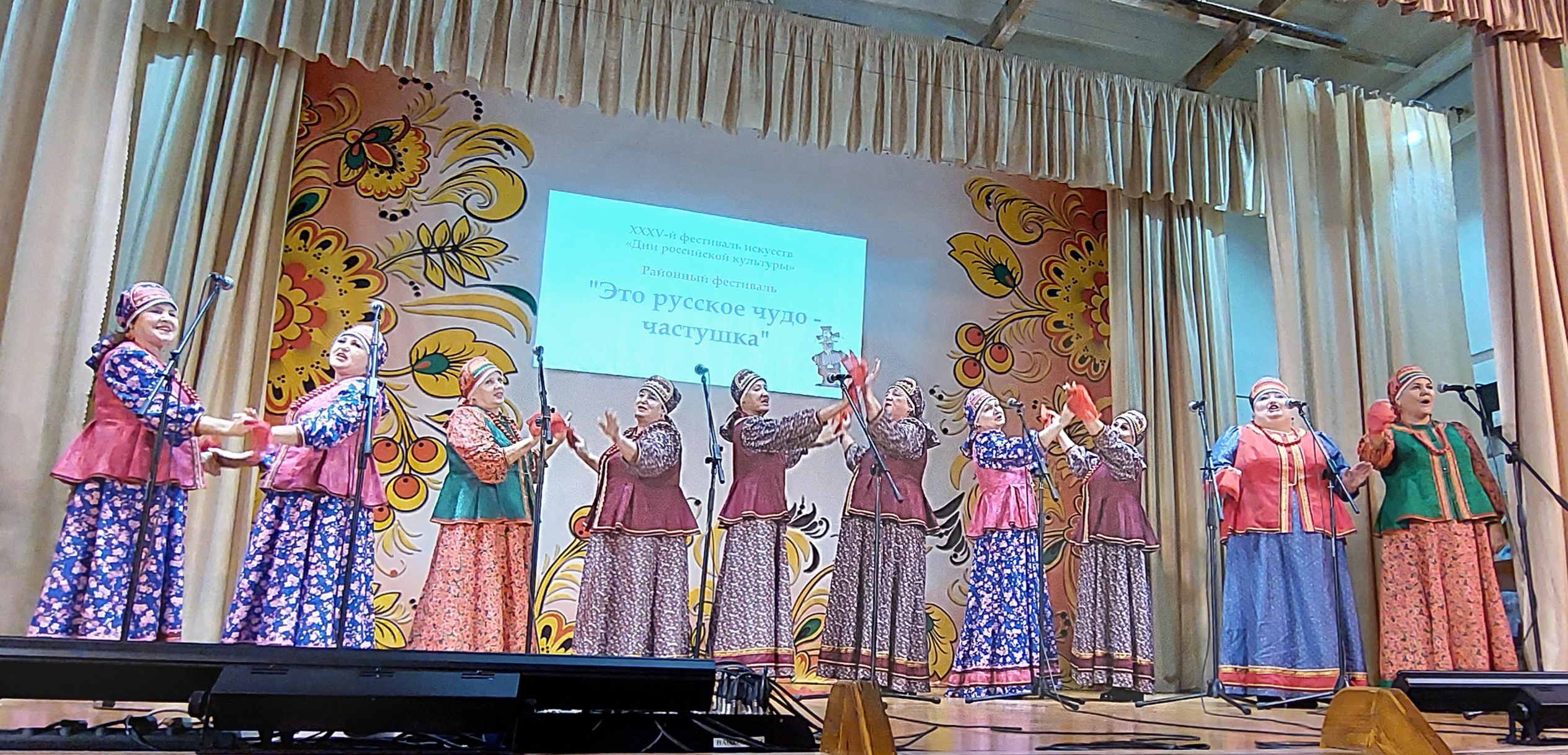 Районный фестиваль «Это русское чудо - частушка!» прошёл сегодня, 26 октября, на сцене Районного дома культуры в рамках празднования Дней российской культуры и собрал творческие коллективы из города и поселений.