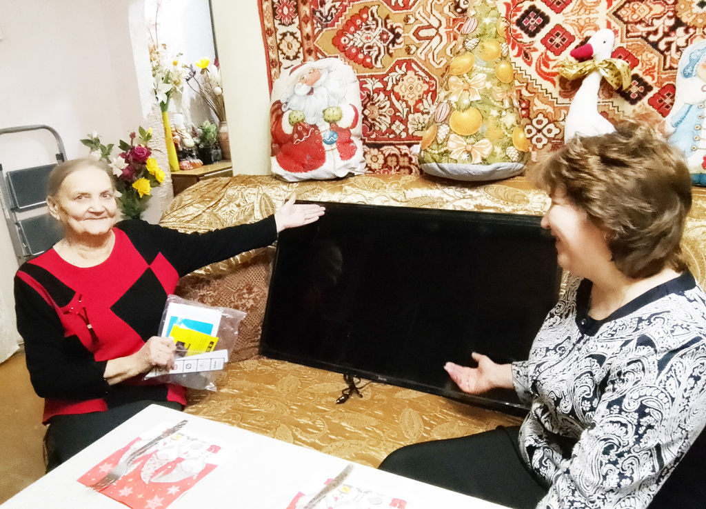 В канун Нового года и Рождества поздравления принимала Людмила Васильевна Кувшинова. От депутата Ивановской областной Думы Сергея Мазалова женщине подарили телевизор.