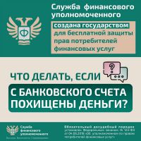 Если с Вашего банковского счета похищены деньги, а банк отказывается их вернуть, необходимо обратиться к финансовому уполномоченному, который бесплатно и в короткие сроки рассмотрит Ваше обращение.
