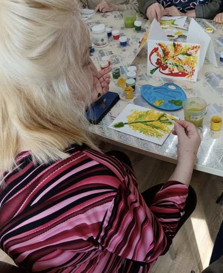 Вместе они погрузились в удивительный мир живописи, освоив изысканную технику пуантилизма (Пуантилизм в живописи (от французского слова point - «точка») - направление, основанное на использовании точечных мазков для создания изображения). Вооружившись простыми ватными палочками, участники мастер-класса словно настоящие художники-импрессионисты создавали свои шедевры, точечными мазками рождая на бумаге весеннее настроение.