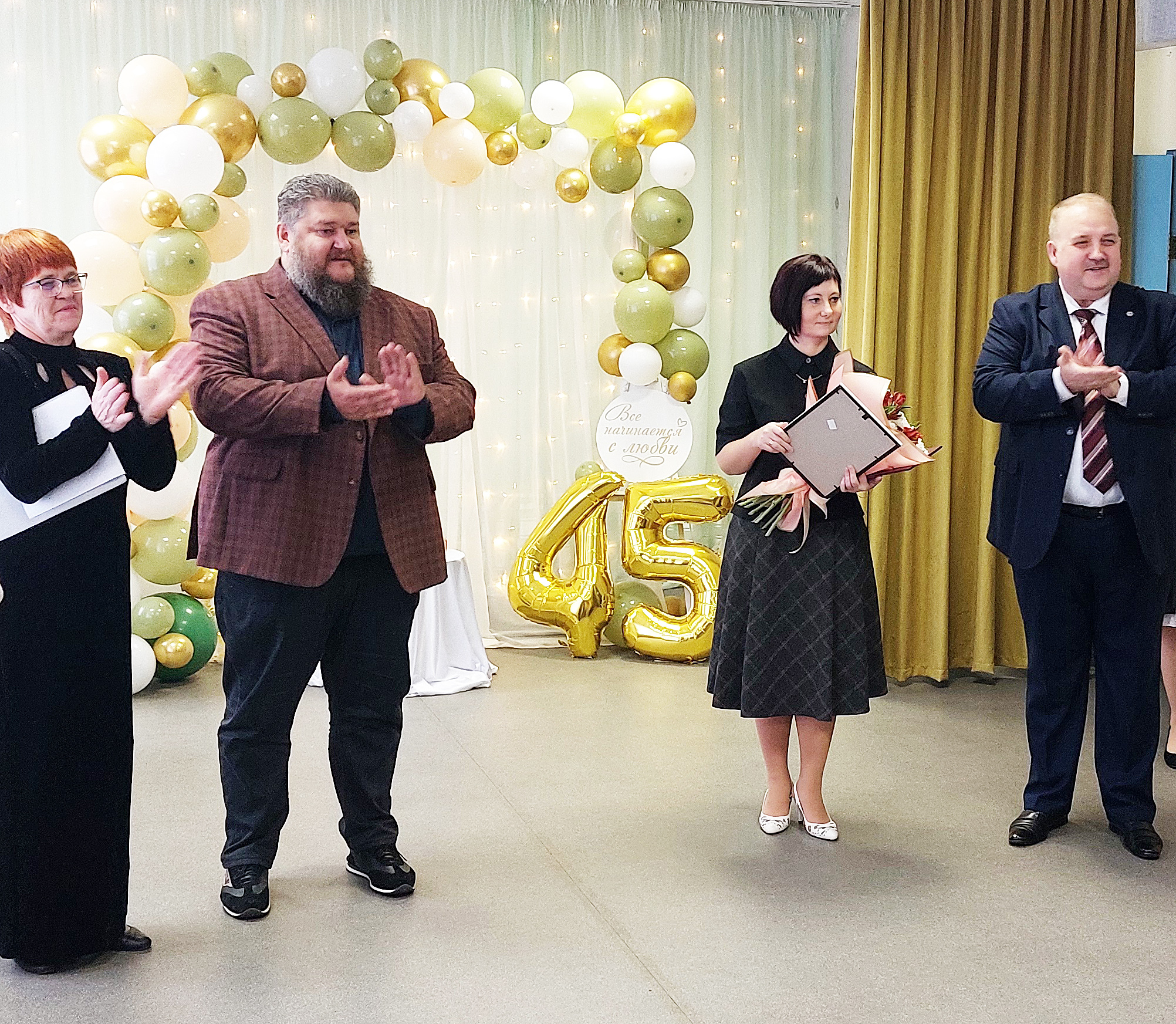 Поздравил с юбилеем присутствующих заместитель главы местного самоуправления Михаил Викторович Мартюнин: «У вас солнечный, интересный коллектив. Желаю вам творчества, здоровья, оптимизма, мирного неба!»