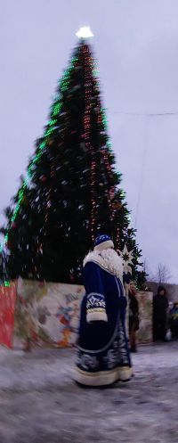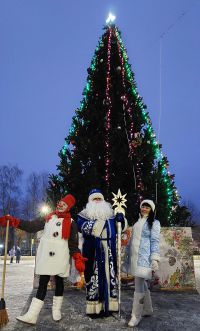 В этом году елка установлена искусственная, высота ее 12 метров. Это впервые, ранее символ года привозили из леса, поэтому и было решено устроить около елки праздник для жителей города, особенно для совсем юного его населения.