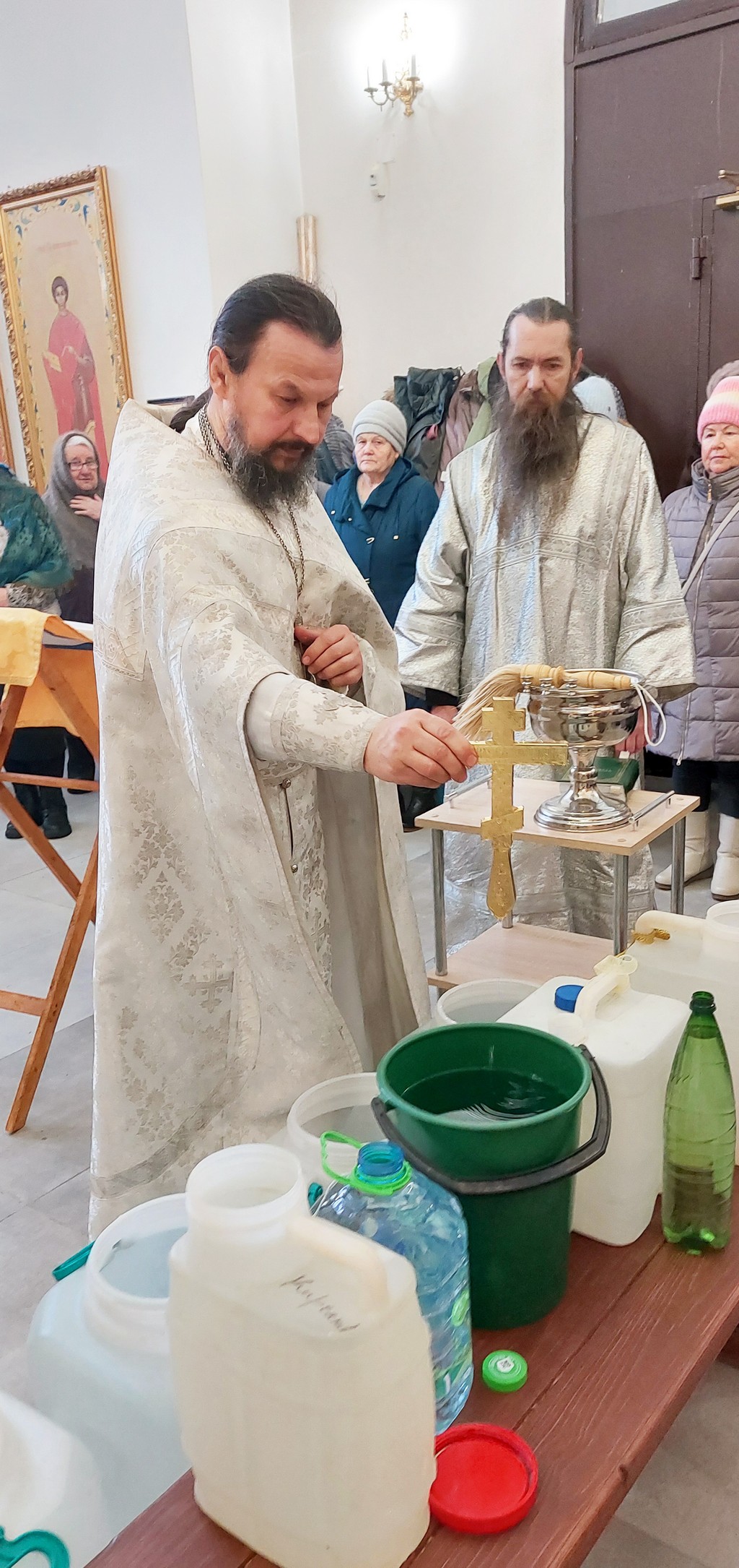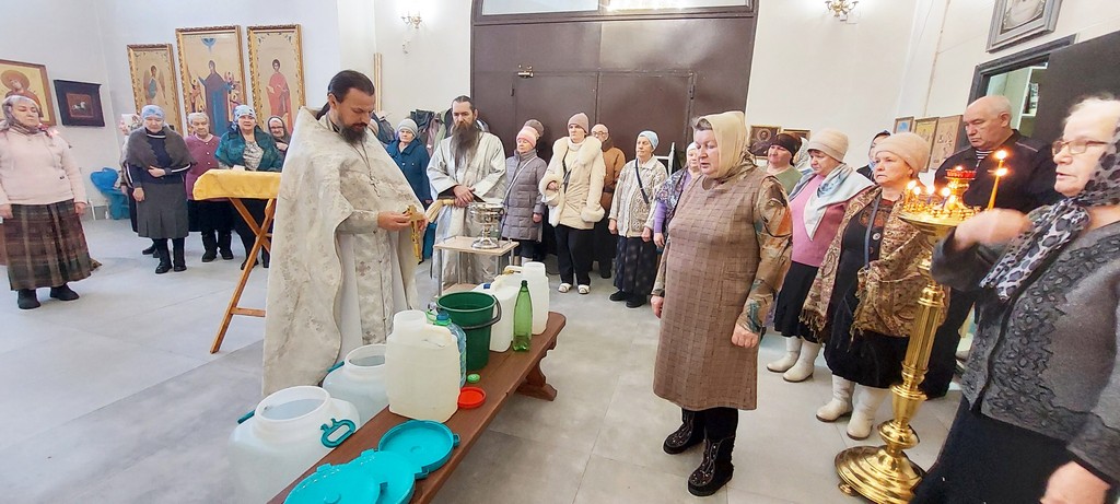 Священники в проповедях поздравили прихожан с таким великим праздником и рассказали о его сути. Также батюшки окропили прихожан Богоявленской водой, помещения храма, иконы. Все верующие смогли взять с собой святой воды.