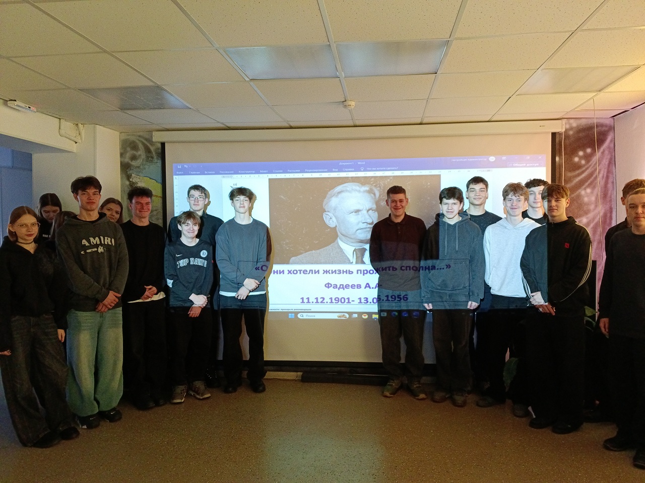 На очередном заседании клуба литературных знакомств ребята 11 класса Лицея (учитель Толкунова О.Н.) слушали рассказ библиотекаря о жизни и творческом пути известного советского писателя и политического деятеля, военного корреспондента А.А. Фадеева.