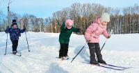 На лыжню городского стадиона вышли школьники и малыши детсадовского возраста под руководством своих взрослых наставников.