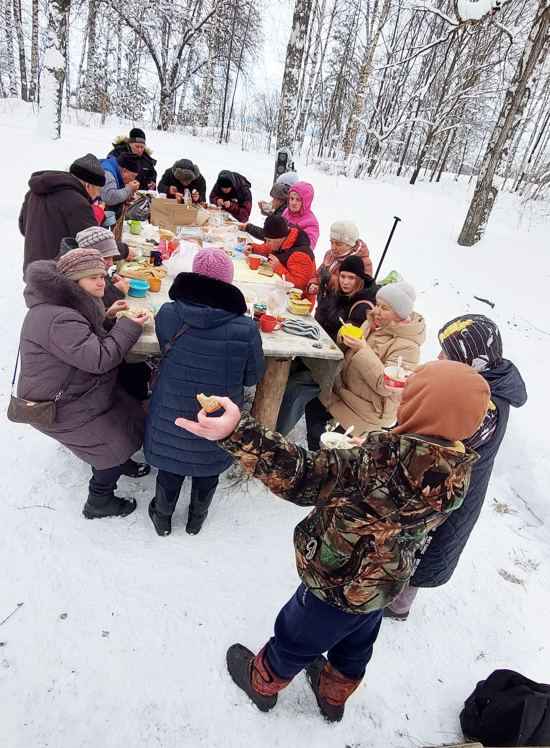 «Пучежские нордики» - команда дружная. Они решили отметить события, связанные с новым стартом соревнований, чаепитием на природе. В замечательный зимний тихий день без ветра и снегопада команда и их болельщики собрались за стадионом, чтобы не только отдохнуть, но и обсудить участие в предстоящих состязаниях.