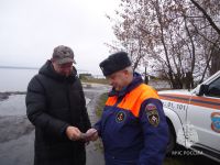 Осуществляя патрулирования водных объектов с рыбаками и отдыхающими проведено 23 профилактические беседы о правилах безопасного поведения на водных объектах в осенне-зимний период, о приемах оказания первой доврачебной помощи утопающему, которыми охвачено 30 человек, при этом распространено более 25 памяток по профилактике несчастных случаев на водных объектах в осенне-зимний период. С жителями населенных пунктов расположенных по маршруту патрулирования и находящихся вблизи водоемов, проведены профилактические беседы по безопасности поведения на водных объектах в осенне-зимний период. Особое внимание было обращено на необходимость обеспечения строгого контроля за детьми, которые играют возле водоемов, ведь, как правило, любой водный объект – это источник повышенной опасности.