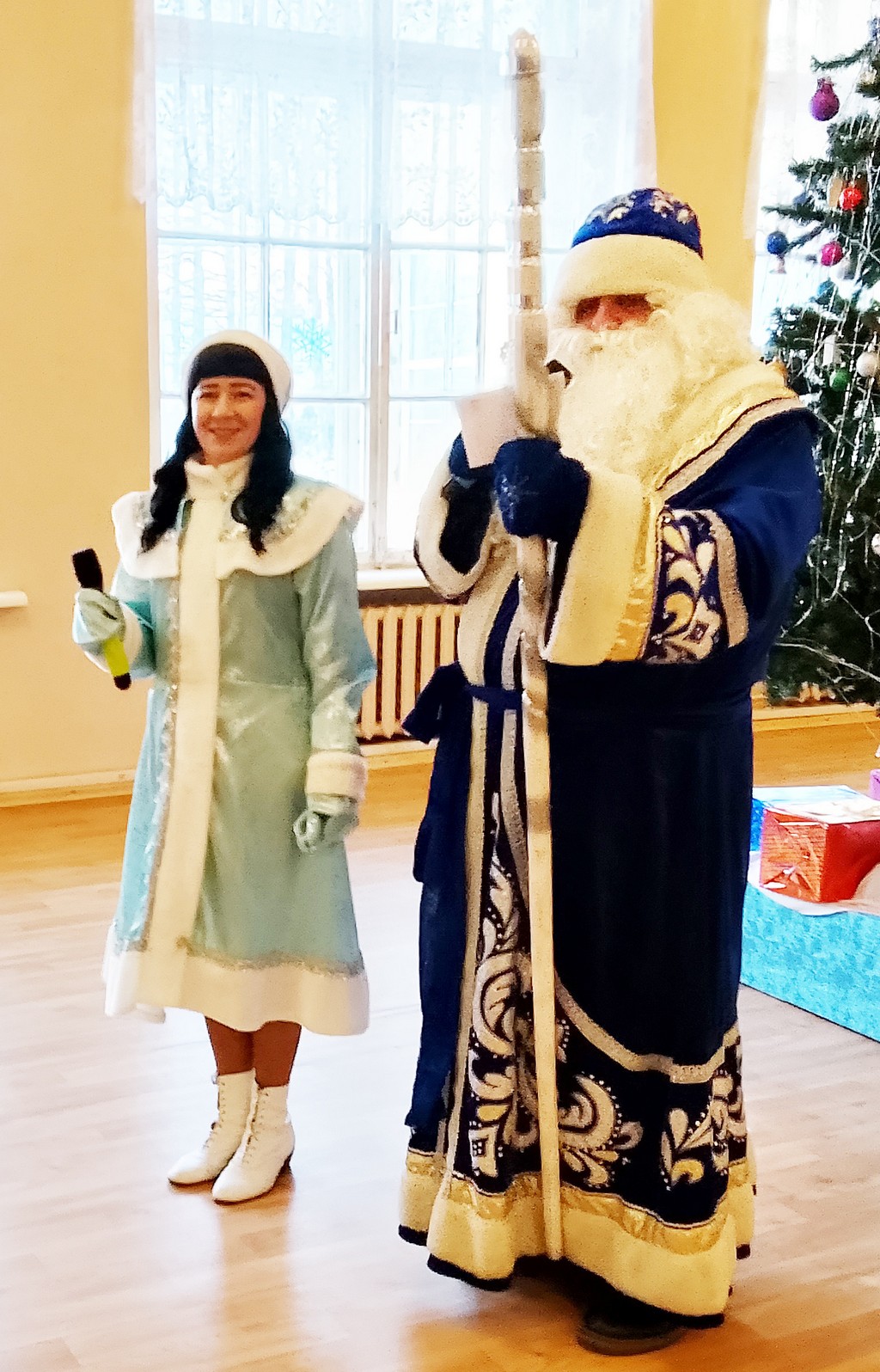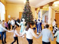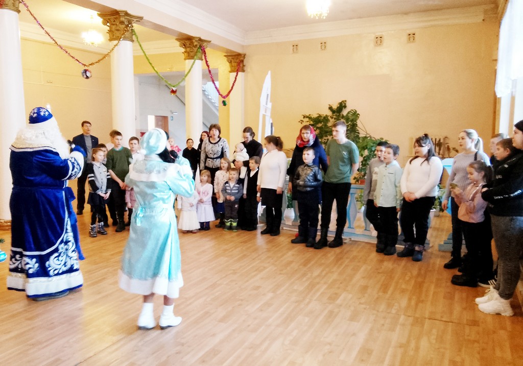 Но чтобы получить подарок, ребята должны были прочитать стихотворение, потанцевать вокруг елки и поиграть с Дедом Морозом и Снегурочкой в различные веселые игры.