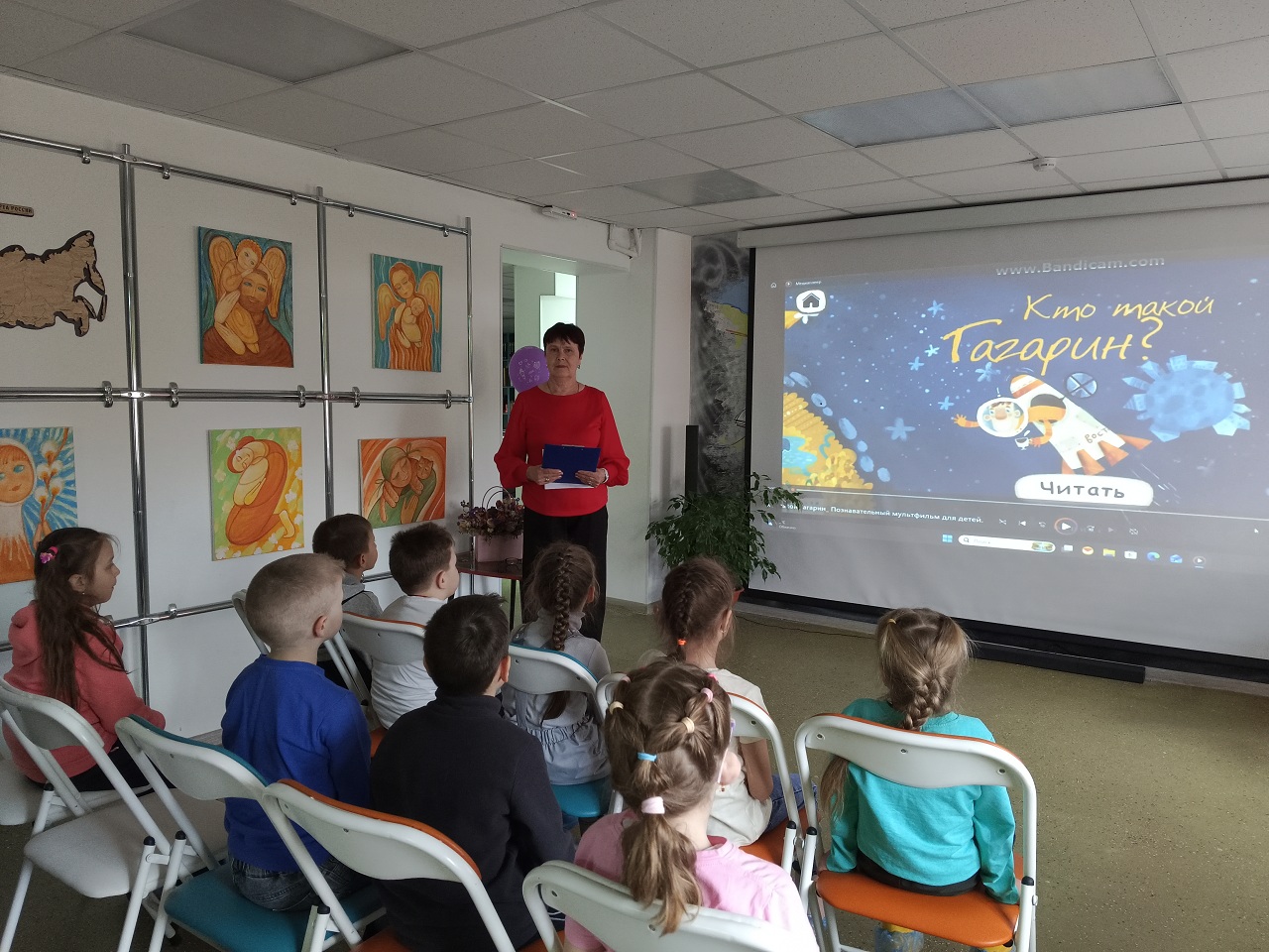 Ребята совершили путешествие по книге Маргариты Погореловой «Кто такой Гагарин?», посмотрев видеопрезентацию.
