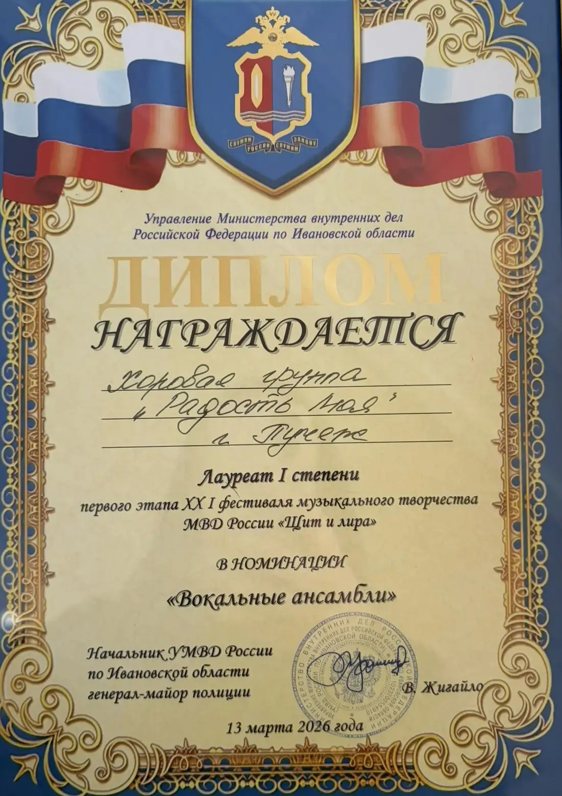 Очень успешной оказалась поездка в Иваново творческих коллективов, в которых выступают дети сотрудников МО МВД России «Пучежский». Там в Ивановском музыкальном училище прошел в региональный этапе музыкального фестиваля МВД России «Щит и Лира».