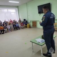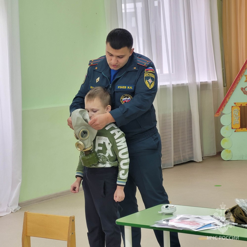 В рамках занятия старший инспектор ОНД и ПР (Пучежского, Юрьевецкого, Пестяковского и Верхнеландеховского районов) лейтенант внутренней службы Рзаев Ильяс Асланович рассказал детям о не допущении шалости с огнем, о номерах телефонов вызова пожарно-спасательных служб, а так же об автономном дымовом пожарном извещателе, показав принцип его работы, рассказал и показал для чего нужен противогаз (ГП-5). Ребята с удовольствием примеряли противогаз на себе! Во время беседы Ильяс Асланович рассказал о правилах пожарной безопасности в быту, указал детям на то, что пожар легче предотвратить, чем его потушить. С детьми была проведена весёлая викторина на тему «Знатоки правил пожарной безопасности», в которой ребята активно принимали участие!