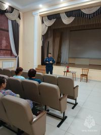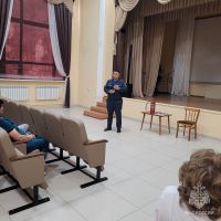 В рамках беседы старший инспектор ОНД и ПР (Пучежского, Юрьевецкого, Пестяковского и Верхнеландеховского районов) лейтенант внутренней службы Рзаев Ильяс Асланович рассказал о пожарном извещателе, показав принцип его работы, напомнил о правилах пользования порошковым огнетушителем, провёл инструктаж о действиях при пожаре обслуживающему персоналу, а так же рассказал как обезопасить себя при атаке БПЛА (беспилотный летательный аппарат). Ольга Николаевна напомнила о правилах пожарной безопасности в быту.
